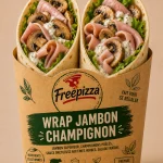 Tortilla de blé, jambon, champignon de paris, crème, salade, tomate