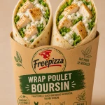 Tortilla de blé, poulet, sauce Boursin, salade, tomate